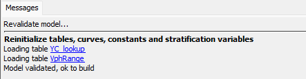 The Messages pane at the bottom of the editor will show the validation results from the initial loading of the model. If errors are detected, they will be listed in this pane, along with a hyperlink to the error source. Clicking on a hyperlink will open the corresponding element editor.