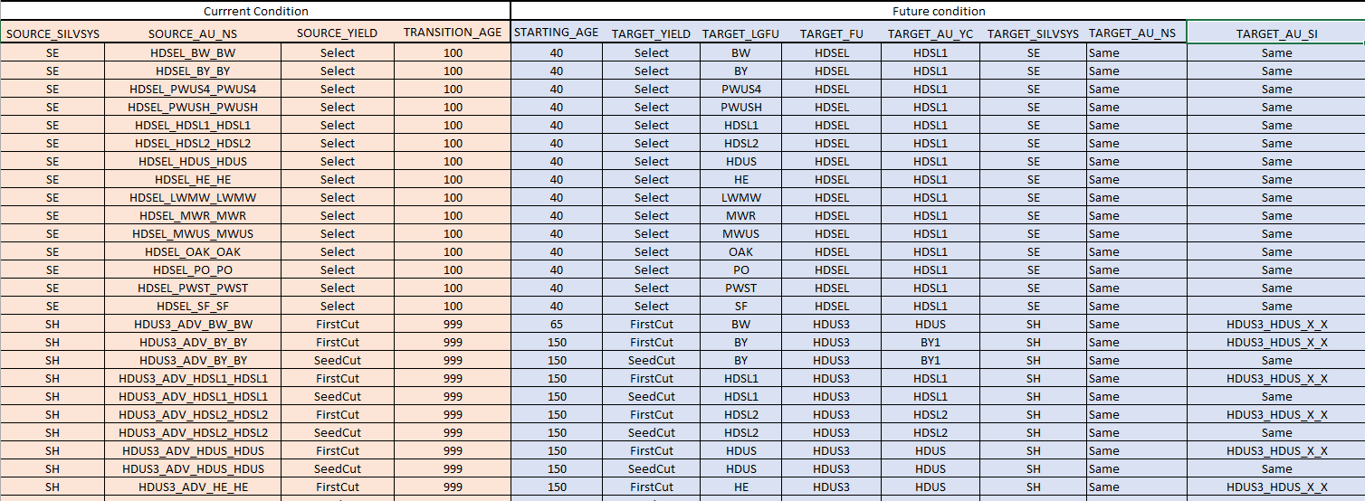 | SH_Treatments | Rules for shelterwood treatments and post-treatment conditions |